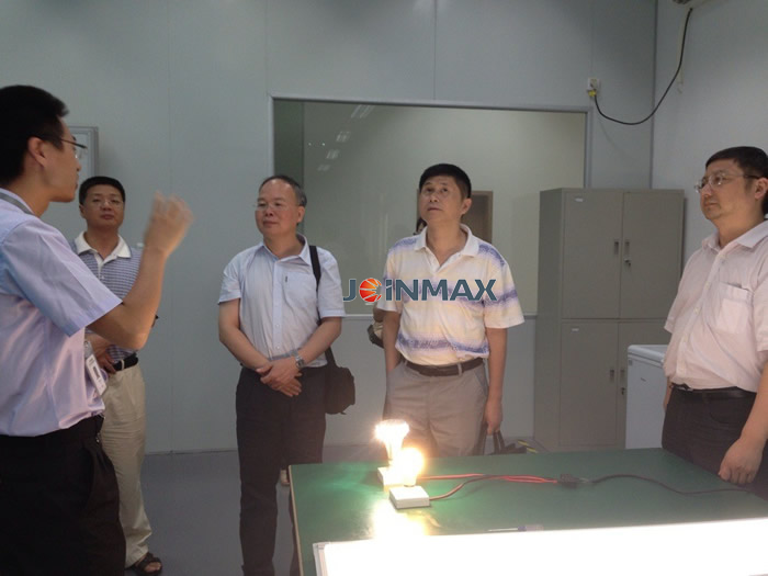 Mr. Xia Lianghui listened to the introduction fromthe base chief at first and then visited the manufacturing process of the LEDlighting product afterwards. He asked about the current situation andenergy-saving effect of the LED light project in details. He gave great appraisalsto the efforts and results that Joinmax has achieved in the energy-saving andenvironment-protection filed.