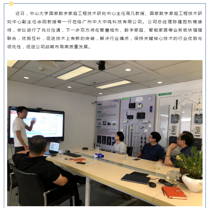 中山大學(xué)國家數(shù)字家庭工程技術(shù)研究中心團隊蒞臨中鳴科技