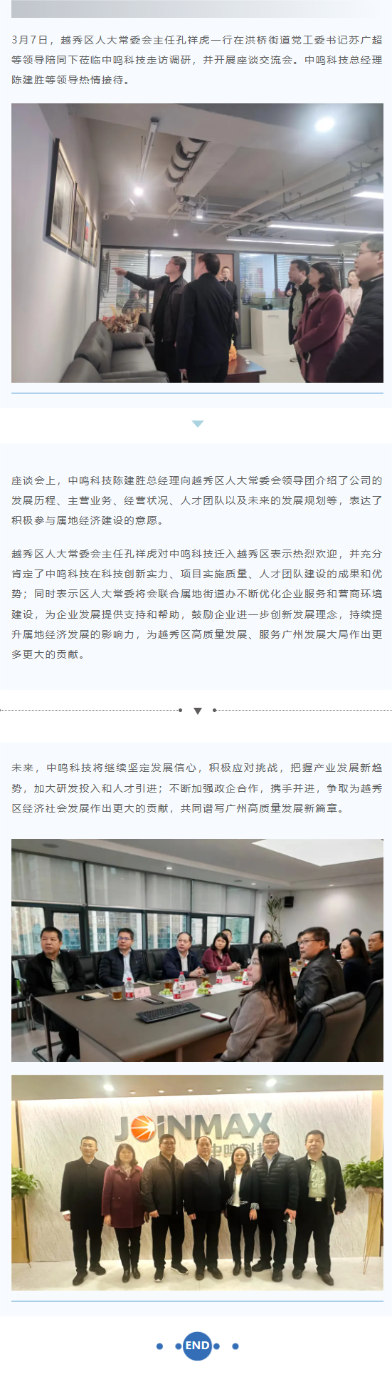 優(yōu)化營商環(huán)境 助力企業(yè)發(fā)展——越秀區(qū)人大常委會(huì)與洪橋街道領(lǐng)導(dǎo)一行蒞臨中鳴科技走訪調(diào)研