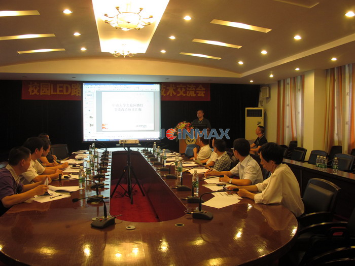 ?? During the summer vacation, Gu Xiaofeng, the chiefs of related department, CEO of Guangzhou Zhongda Holding Co.,Ltd, Wang Gang, professor of Foshan research institute of Sun Yat-Sen University, Zhao Fuli, associate professor, LiRui ling, the chairman of Guangzhou Joinmax Co.,Ltd, Chen Jiansheng, the general manager, BoYaoting, the associate manager all attend on site and give technical guidance for the newly-built LED courtyard lamp. During the tour, they express and exchange each` view on it and give high appraisals on this campus lamp transformation project.