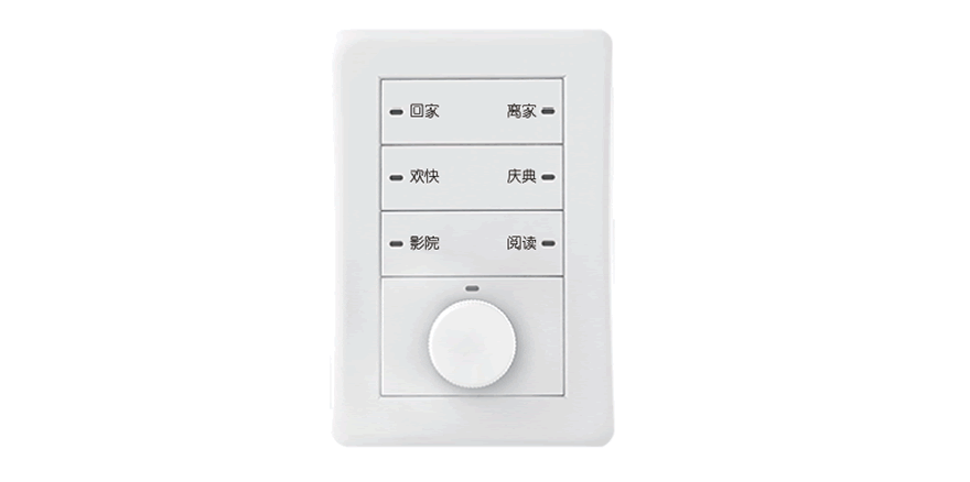 1、6鍵/1-旋鈕燈光控制面板,具備DALI接口。