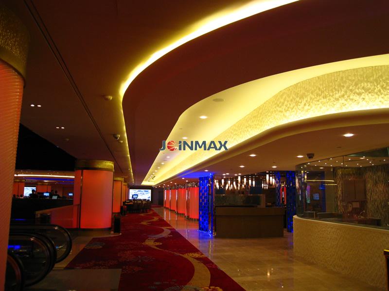 項(xiàng)目簡(jiǎn)述 海洋之神為澳門最新地標(biāo),外形設(shè)計(jì)耀目奪目。中鳴承擔(dān)并完成室內(nèi)多款投光燈、線條燈,LED燈具用量上萬(wàn),主色調(diào)以酷藍(lán)色、配以溫暖紅色、橙色和綠色,將娛樂(lè)場(chǎng)內(nèi)部裝扮得如五彩繽紛的海洋世界;外墻LED照明系統(tǒng),LED燈具用量七千支,每每夜幕低垂,呈現(xiàn)七彩變幻的色彩,宛如夢(mèng)幻的泡泡在閃閃發(fā)光,展現(xiàn)出流光溢彩的如夢(mèng)夜色。