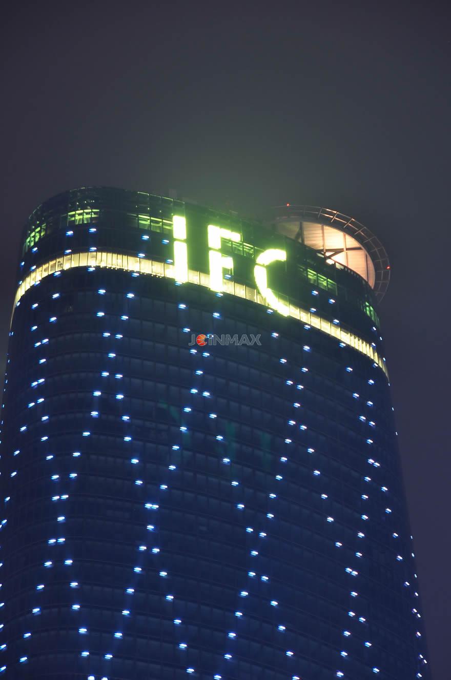 項(xiàng)目簡述 廣州國際金融中心(簡稱廣州西塔),位于廣州珠江新城核心商務(wù)區(qū)建筑總高度437.5米,建成時(shí)是中國第三高樓。該項(xiàng)目使用LED像素?zé)羝丛跇琼斎龑訕?gòu)成“IFC”三個(gè)英文字母,共兩面,每一面的面積達(dá)120平方米。
