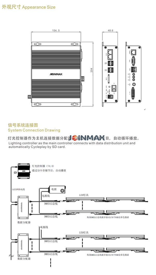 8.Supports communication with Joinmax network interface protocol, directly connects with DDU.