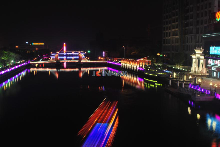 Project description: The Qijiang river which is 30kilometers in length flows through the downtown area of Zhongshan and 11 towns, the average width of river is 150 meters. There are green trees , tidy bank, scenery road, squares, parks and numerous stores along the river. There lies nearly 10 bridges with different architectural styles and combine the nature scenery with human landscape ?together. Pleasure-boats are also available for people to enjoy the beauty of Qijiang River. The beauty scenery on both sides of Qijiang River used to be named as one of the eight sceneries ?of Mountain Xiang, it tells the beautiful scenery of the bustling dock and prosperous business stories. Now, the lightening of LED manufactured by Joinmax creates a world of light and the scenic spots on both sides of river could still be seen at night, the innovative design of lights move along with boat attracts large amount of tourists.