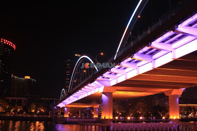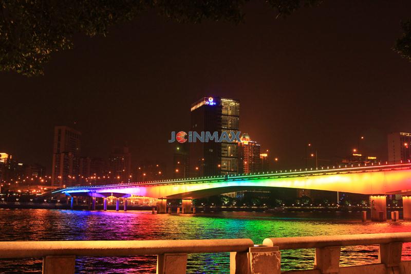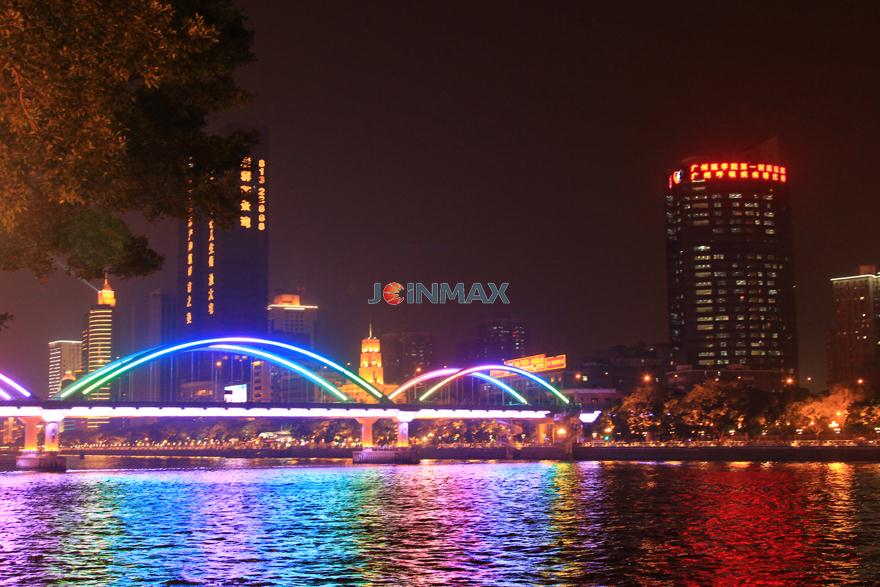 Project description: The Liberation bridge, Jiangwan Bridge, Haiyin Bridge, are located over the Pearl River, Guangzhou. The designing concept is to collocate with appropriate lamp and simple line sketch to accentuate the structural beauty of the bridge , bring visual pleasures for the viewers and make the city landscape of Guangzhou more charming and attractive. Joinmax provides self-developed LED lamp and optical fiber circuit control system with the latest concept and notion to this whole light project and make the extraordinary bridge more splendid.